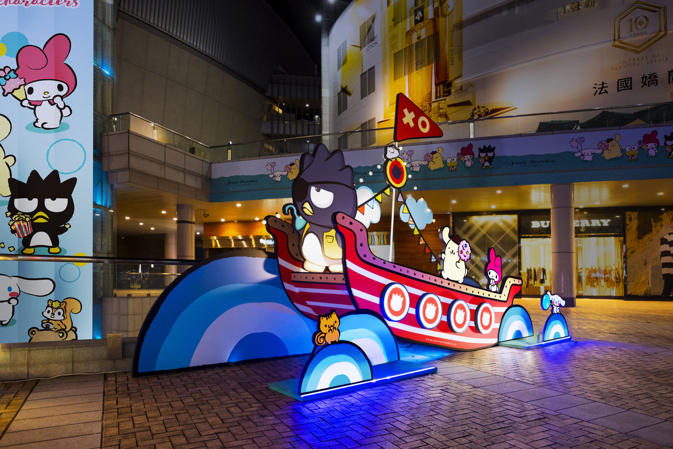 • 三麗鷗聖誕樹高度高達16公尺, 走近時會發現聖誕樹下擁有神秘的小樹屋等待你的探索!整個空間充滿粉紅色,還有片片雪花超浪漫,美樂蒂、大眼蛙、酷企鵝、大耳狗就坐在聖誕樹旁,並為粉絲準備一張華麗的紅色沙發,等你一起來合照,留下最美好的耶誕回憶!
