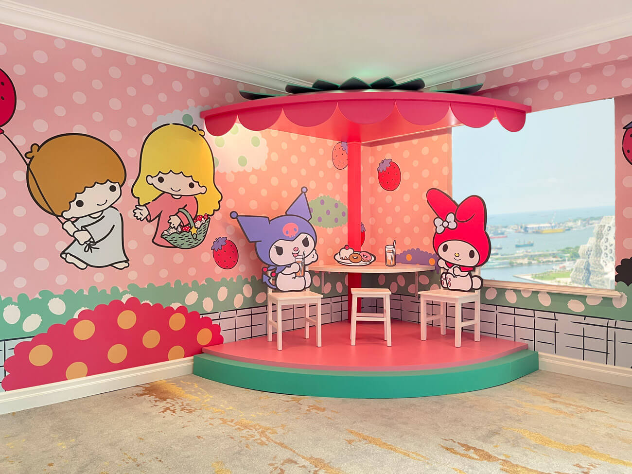 在漢來飯店的26樓,三麗鷗全明星熱情地歡迎你進入他們的夢幻世界,主題空間「SANRIO FANTASY ROOM」 走進這個粉紅色的草莓公園,美樂蒂和酷洛米正在露天咖啡座悠閒地度過時光,大眼蛙也找了一個舒適的角落坐下來乘涼。更有Kitty在她的草莓小屋裡向你友好地打招呼,這個主題空間不只是拍照的理想場地,也是一個最佳機會,讓你能夠捕捉到這些三麗鷗角色的每一個可愛瞬間。