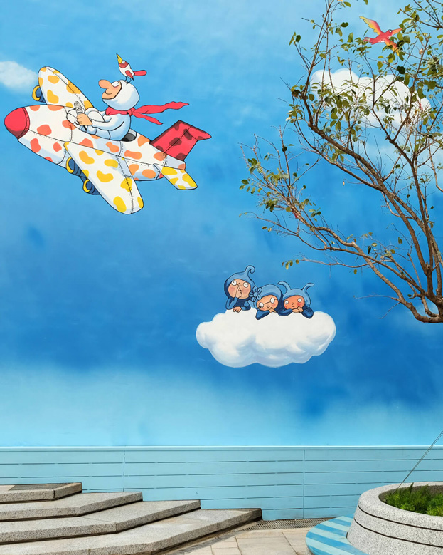 從幾米的繪本「小蝴蝶小披風」汲取靈感,創造了一個跳脫紙張、活躍於現實世界的藝術裝置。 站在新竹火車站對面的12米高彩繪壁畫前,你會看到繪本中的角色藏匿在雲層之間,或是藍天下自由翱翔;在廣場水池旁,「小蝴蝶與小披風」正優雅地海面上跳舞。 位於12挑高半浮雕彩繪裝置「森林的幸福微光」結合投影及藝術裝置營造出一個溫馨的氛圍,更是迅速成為新竹市民和遊客熱愛的網紅打卡點。