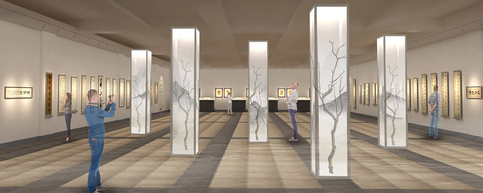 - 展覽以陳澄波的多元學養為核心,融合東西方繪畫元素來規劃整體空間。展場主入口營造出如詩如畫的東方山水,引領觀者探索陳澄波作品背後的文化交織和美術史脈絡。除了視覺藝術,展覽也利用科技設備,如數位臨摹,讓觀者更深入地體驗和學習翰墨藝術,使展覽更加立體和引人入勝。