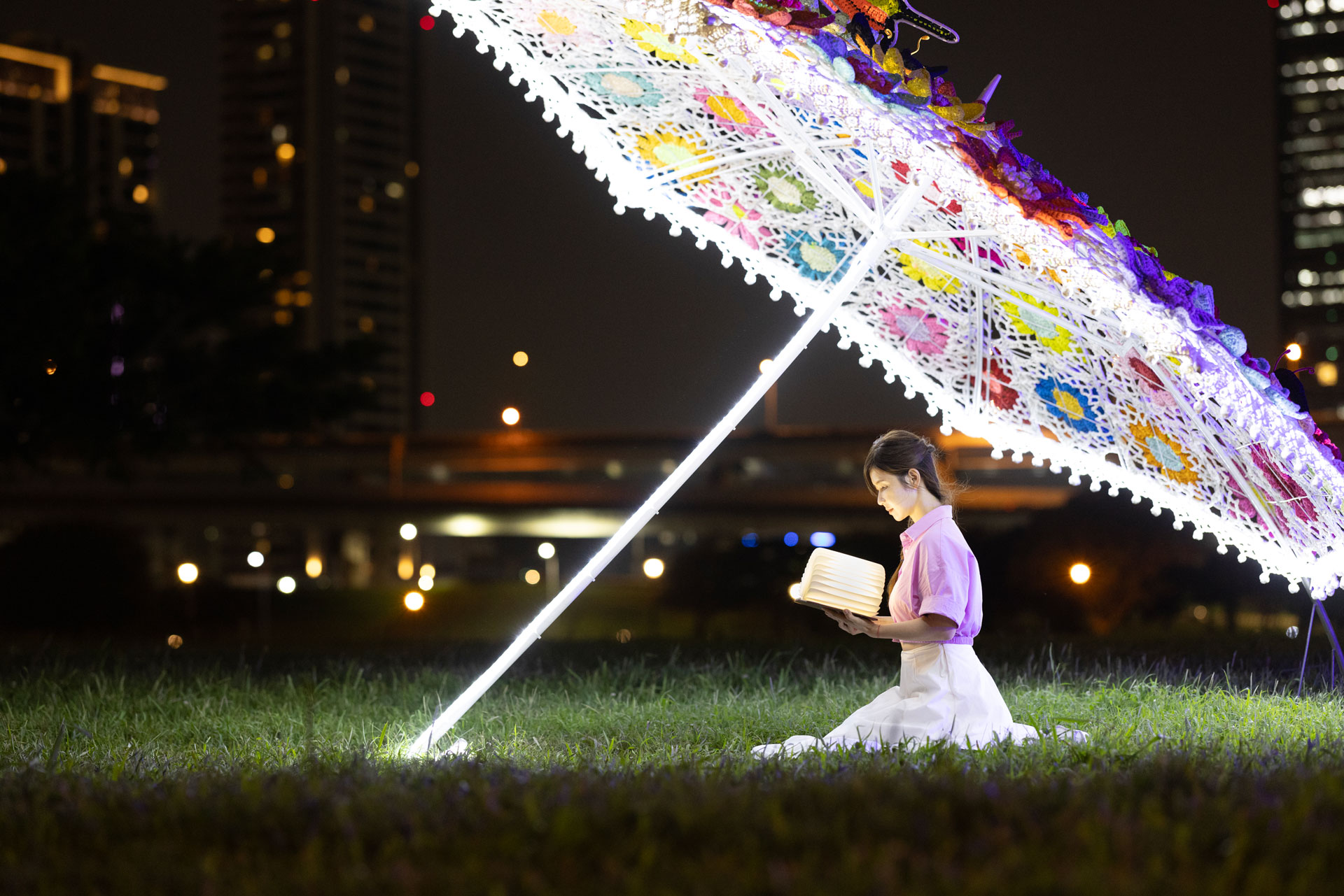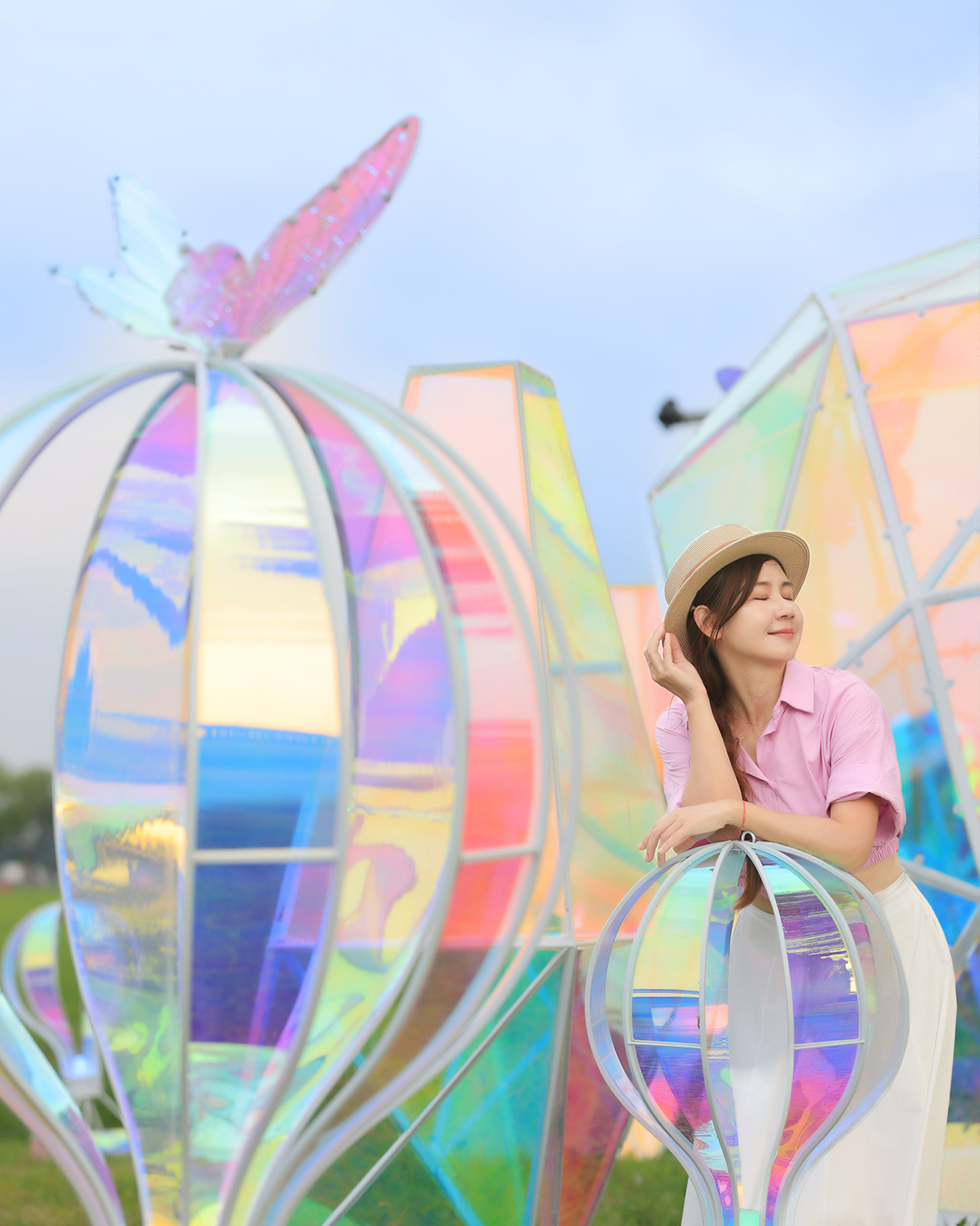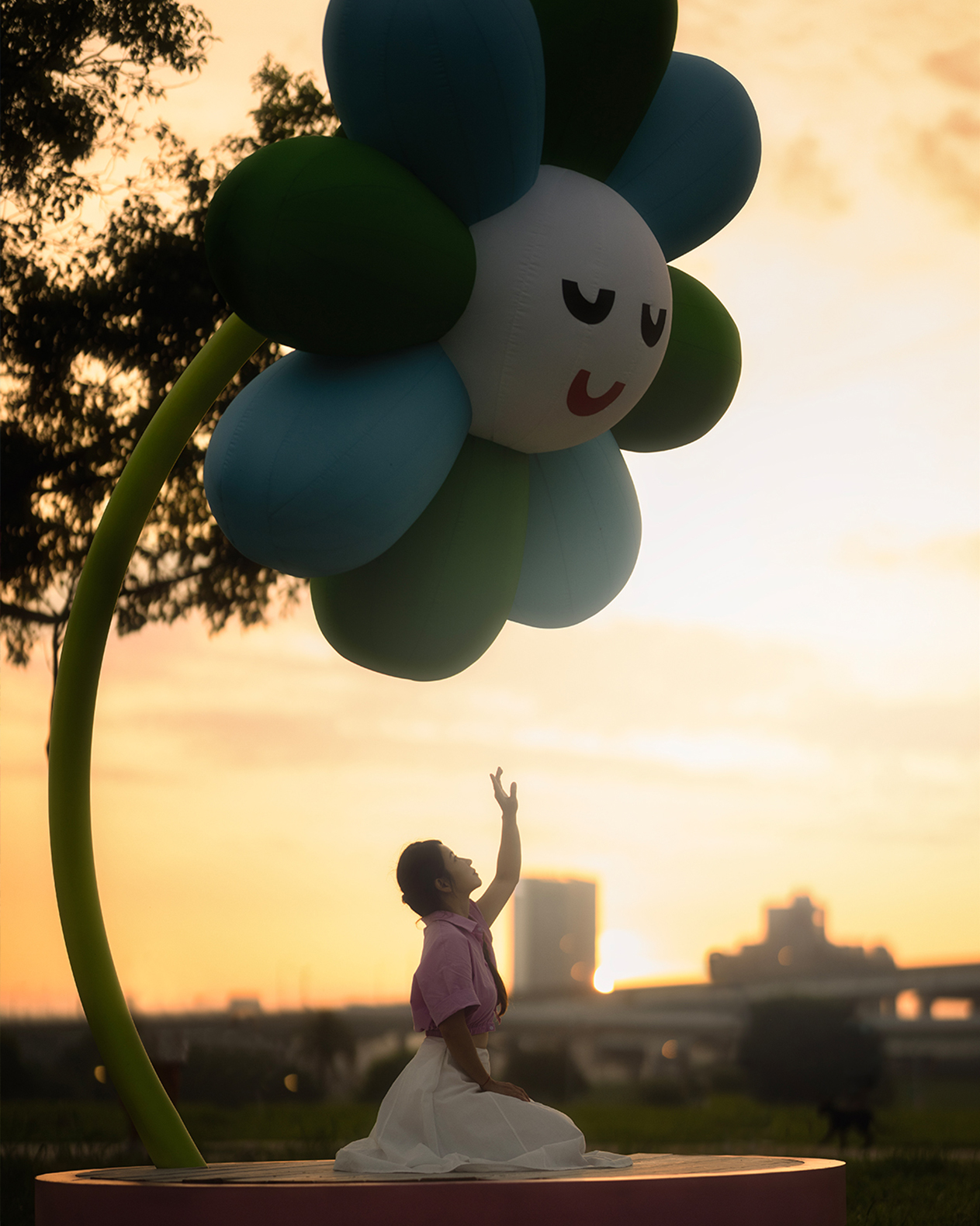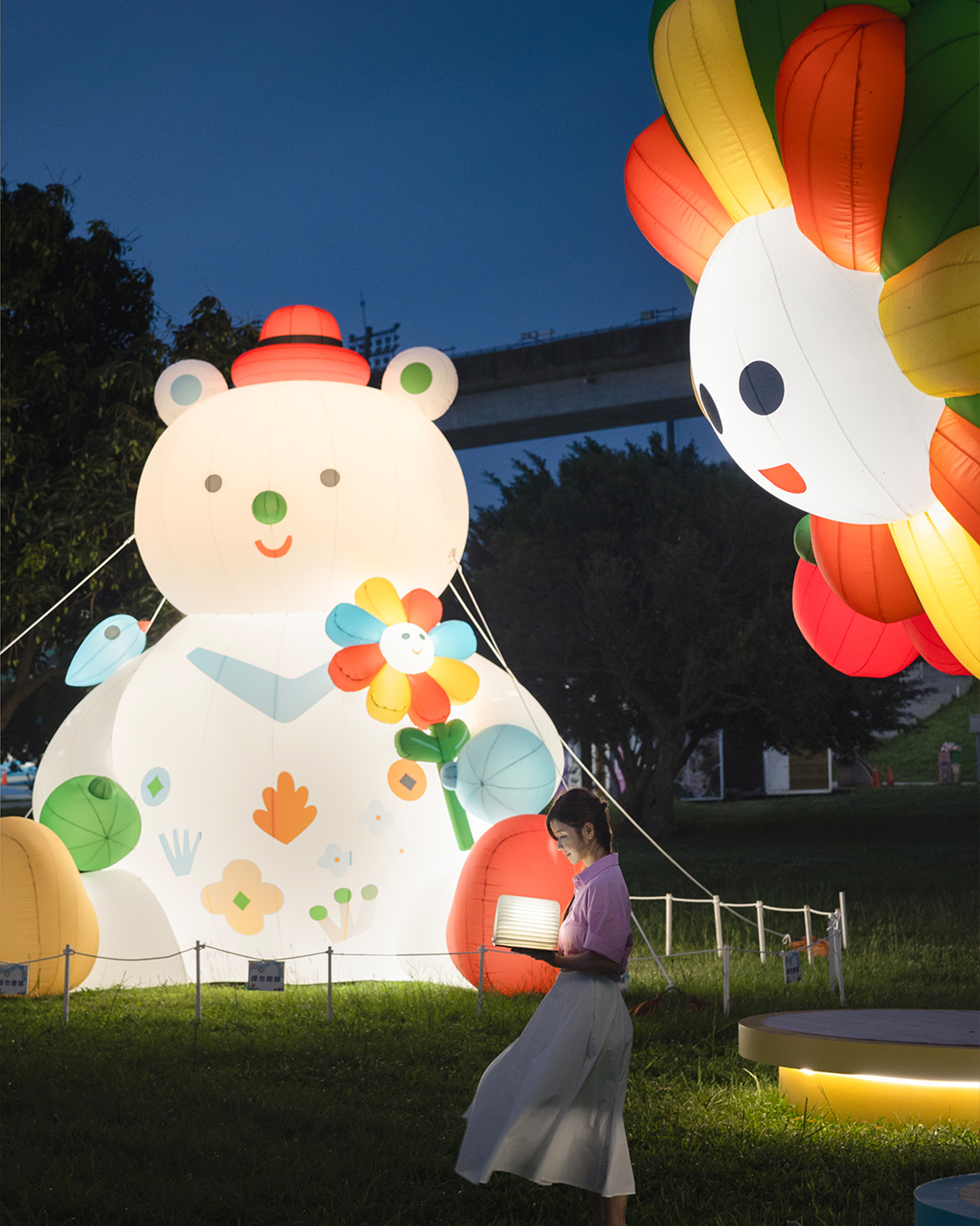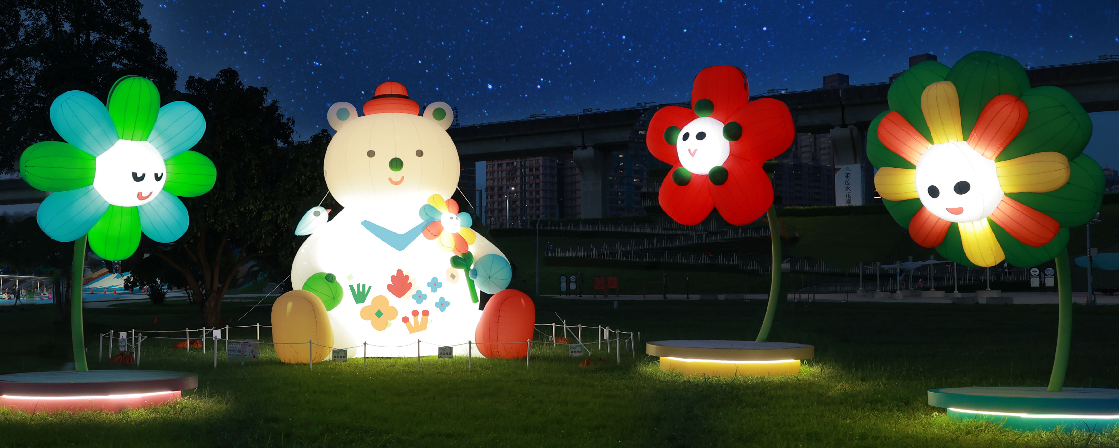 - 「YES WE ARE FLOWER! 花開水岸•春日藝遊展」在新北大都會公園綻放!我們首次與藝術家及插畫家攜手合作,將春天的生機勃勃和繽紛色彩轉化成一幅幅獨一無二的藝術裝置。園區入口由五彩繽紛的光影廊道迎接每一位訪客,帶領進入熊猴森樂園前的奇幻藝花園。這裡,插畫家潘心屏(hsinpingpan)以滿溢童趣的視角創造了全新的插畫角色「幸福熊」,手中的笑臉小花與巨大花朵氣球雕塑隨風搖曳 。 當夜幕降臨,「織夢花傘」的立體鉤織花朵在紫光燈下發光,映出春日百花的夢幻景致。同時,「幻彩之花」在日光下閃耀,夜間則與環境的樹影和燈光交錯,營造出魔幻般的春夜島嶼,讓大都會的夜晚變得更加生動而迷人。