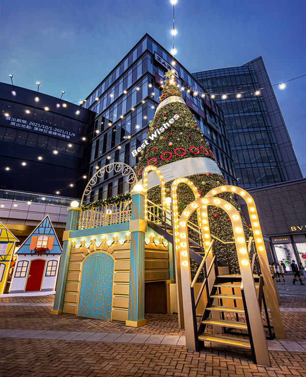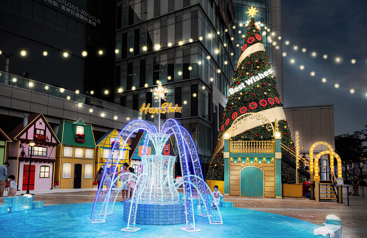 - 從2020年初,全世界共同渡過一段充滿挑戰的疫情年代,在歲末年終為了實現讓人們暫時忘卻困境,感受到遠方浪漫的空間,一座座全新主題的北歐風格的彩色木屋在漢神巨蛋的廣場中登場,與廣場中心的藍白色光雕噴泉相互輝映,夜幕降臨時,16米高的聖誕樹和歐式露臺將一同點亮,如繁星點綴在夜空中,人們走上露台,從廣場高點俯瞰這個美麗的北歐風格小鎮。