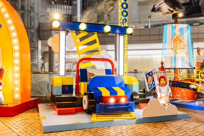 漢神奇樂廣場 (LEGO FUN PARK) 以「創意無限,玩樂無界」為主題概念,結合樂高的創意精神與節日氛圍,打造2025年漢神巨蛋廣場的節慶佈置。本次主題設計靈感來自冒險樂園,將雲霄飛車、摩天輪、滑水道和海盜船等受歡迎的遊樂設施,以大型樂高積木的形式重新呈現,賦予熟悉的裝置全新的視覺體驗,同時傳遞了樂高「通過玩耍學習」的品牌理念,啟發大小朋友的想像力與創造力。